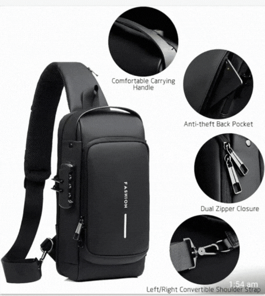 Travel smart with this sleek anti-theft sling bag. It’s compact, waterproof, and built for comfort—perfect for daily commutes, rides, or trips. Keep your essentials secure and charge your phone on the go!